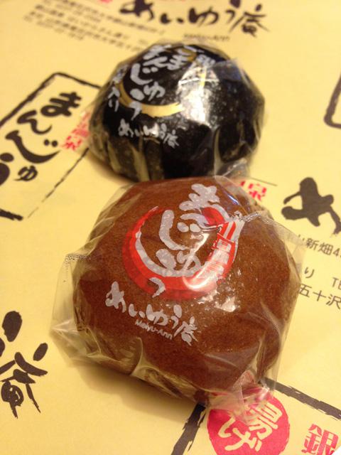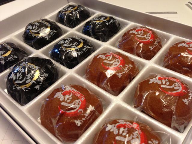 つぶあんのまんじゅうとごまのまんじゅう。