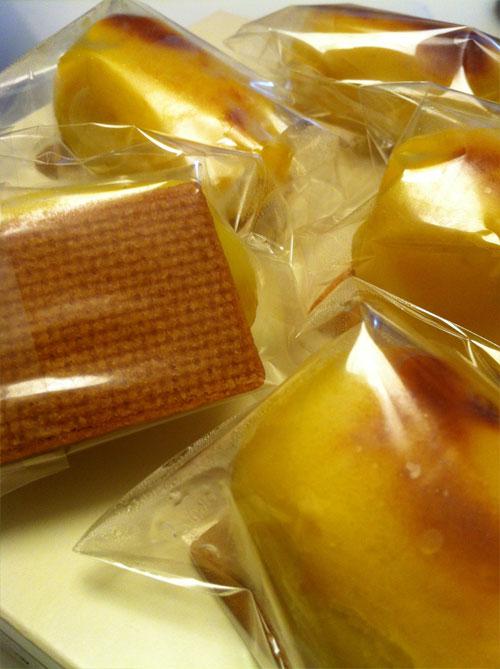 四角いクッキーの上に俵状の