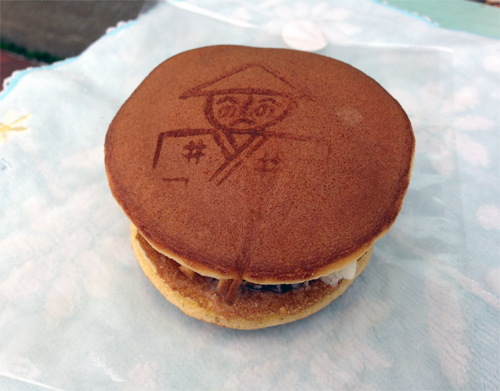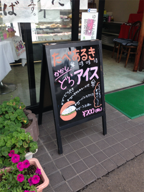 上山温泉街にあるかりんとうで有名な大國屋のかかしどらアイスです。