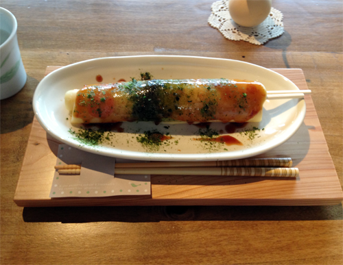 上山市内のまちカフェ2011(ふれあい)でふわっともっちりしっとり感あふれる山形のソウルフード「どんどん焼き」をオシャレに頂けます。