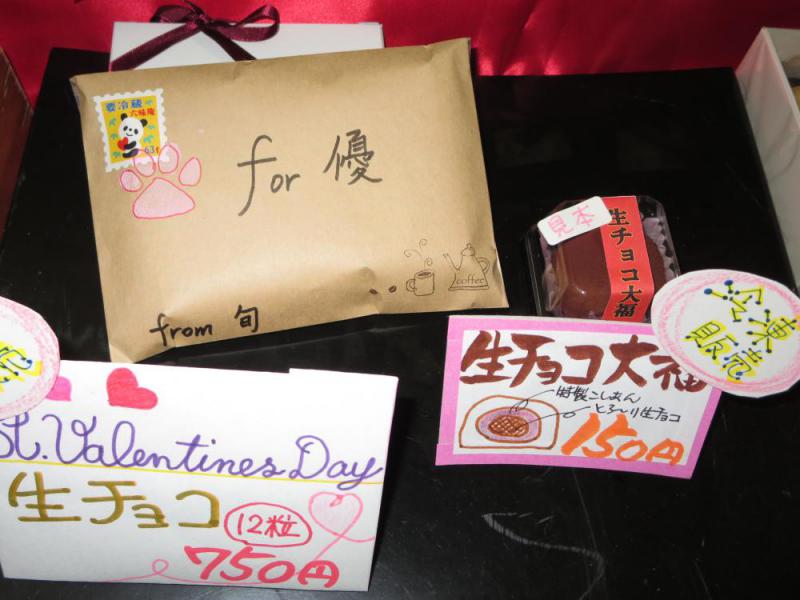 年末年始と餅つきに追われ、例年より早く訪れた超強大な冬将軍に敢然と立ち向かっているうちに、ふと気づけばもう睦月も最終週…。正月気分もどこへやらですが、遅ればせながらおめでとうございます。正月からは上生菓子や桜餅・鶯餅等並んで、お店の雰囲気も一層華やいでました(過去形かよ…突っ込まないで)が、上生もそろそろ完売で、この時期になるとバレンタイン間近ということでチョコレートが食べたくなるハズ・・・そうです、今年も出ました♪ 口溶けが自慢の生チョコとコクが自慢の生チョコ大福です♪オヒトリサマにもおすすめで〜す。写真良〜く見ていただけると分かると思いますが、今年は自信作の余り、六味庵の切手まで作ってしまいました