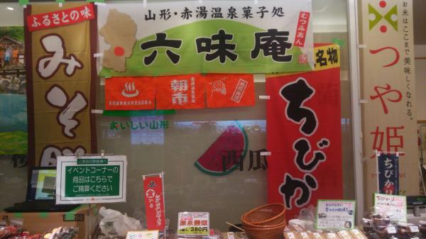 無事昨晩最終の新幹線で赤湯に帰ってまいりました。念のためと思って持って行ったダウンジャケットとマフラー・手袋の三種の神器が大いに役立ってくれました。事前の予報では二桁の気温だったので花見気分で出かけたのですが、完治すると思ってた手指のしもやけは現状維持でした売り場(イベントコーナー)の様子の写真です。赤湯温泉朝市もちゃんと宣伝してきましたよ。また、パソコン担いで行って、赤湯と南陽の四季などもスライドショーで流してきました。お買い求めいただいた方、ご試食頂いた方、お話聞いてくださった方…その他皆様方本当にありがとうございました。