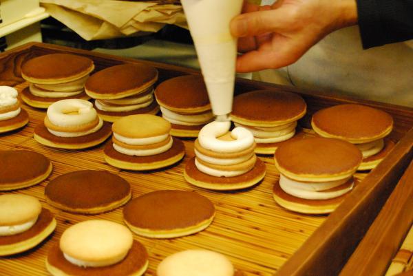 ケーキ作りをやめて、ここ数年はクリスマスも他所事でわれ関せずでしたが、そうなると12月は月末(年末)まで静かすぎて、精神的にも余りよろしくないので今年は真似事でもしてみようかな、と思います。濃厚なエダムでチーズのクッキーを焼き、クリームチーズをふんだんに使ったチーズのクリームと合わせて大ぶりのどら焼きに挟んでみました。冬期間限定のチーズどら焼きとして12月15日から販売します。箱入で430円、クリスマス仕様だと500円と、どら焼きにしてはイイ値段ですが、モッチリ、ネットリしたチーズの味わいは期待を裏切らないと思いますよ。