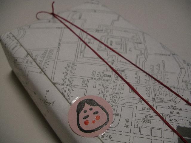 ※包装紙には山形市の古い地図が書かれています。おたふくシールがひきたちます。