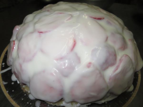 今日は月曜日、午後から山形調理師学校で、イキの良い若い衆相手にお菓子の実習です。今月はクリスマスもあるのでケーキ三昧です。今日は苺のムースを閉じ込めたフレーズというドーム型のケーキです。写真だと見にくいのですが、表面には苺のスライスを敷き詰め、ミルクナパージュで艶出ししてます。昨日試作したものが今日は家族のおやつになります。毎週こんな感じで、みんな血糖値上がり気味、困ったもんです。