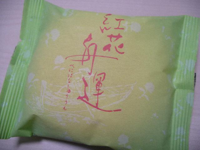 紅花舟運(べにばなしゅううん)というつぶつぶチーズが入ったクリームをふわふわブッセではさんだ洋菓子です!