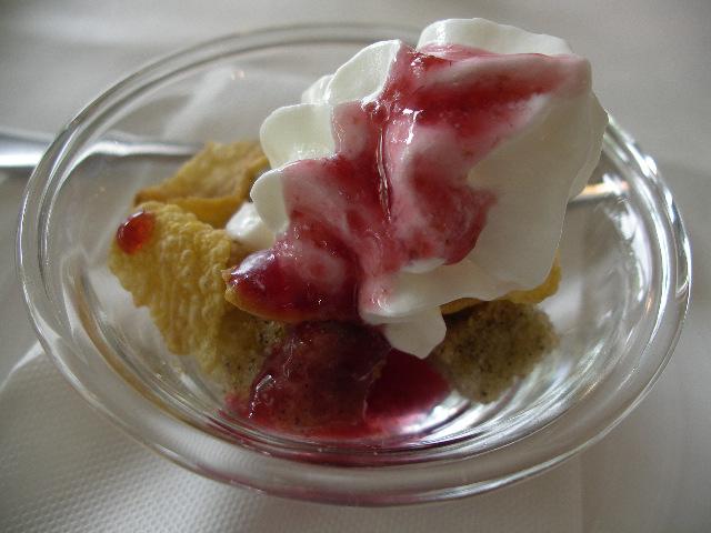 サイコロ状のバナナケーキにふわふわ生クリーム添え〜