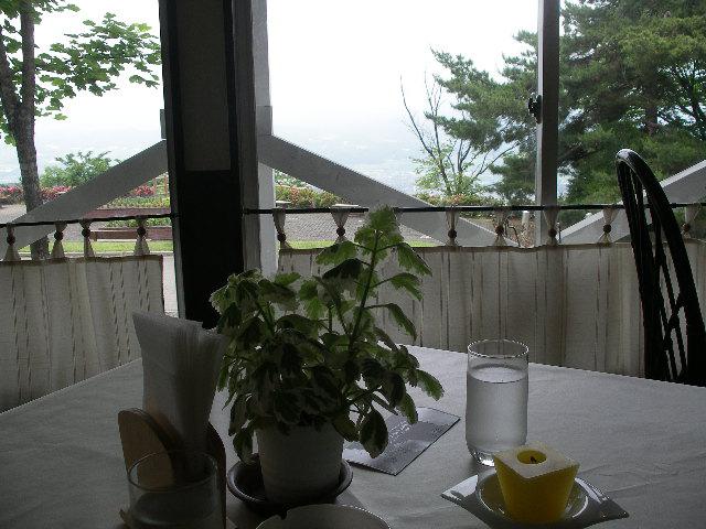 山形市の街並みと、月山や朝日連峰の雄大な山々をながめながらのデザートは格別です。