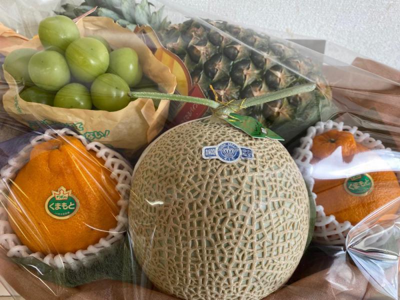 四十九日法要お供え籠盛静岡県産【クラウン マスクメロン】長野県産【シャインマスカット】熊本県産【デコポン】フィリピン産【ゴールデンパイン】*ご予算、ご用途に応じてお作りします。