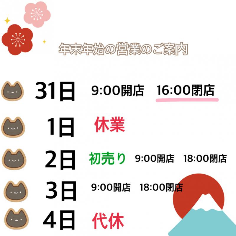 新年の初売りは2日、また営業時間は通常通り9時から18時となります。