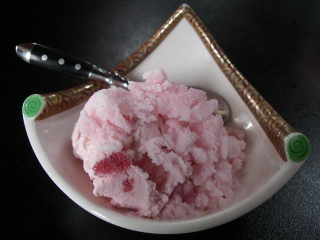 山形市のラーメン屋さんの《手作りいちごシャーベット》です。