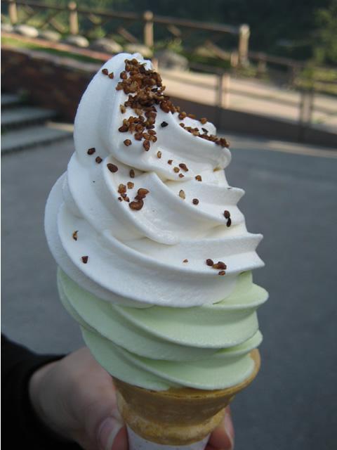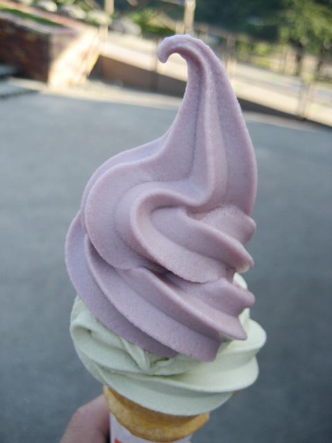 ▼月山湖《ソフトクリーム》2種類のアイスをトッピング