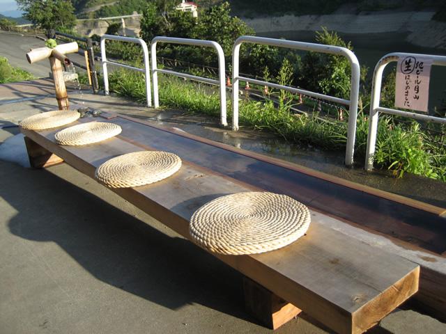 売店の裏には月山湖を一望しながら足湯を愉しむことができます。
