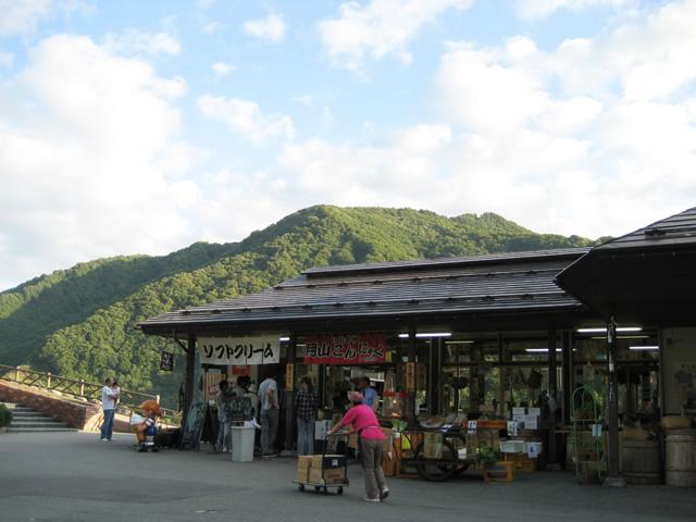 ソフトクリーム、リブロース、月山こんにゃくの売店が並び、