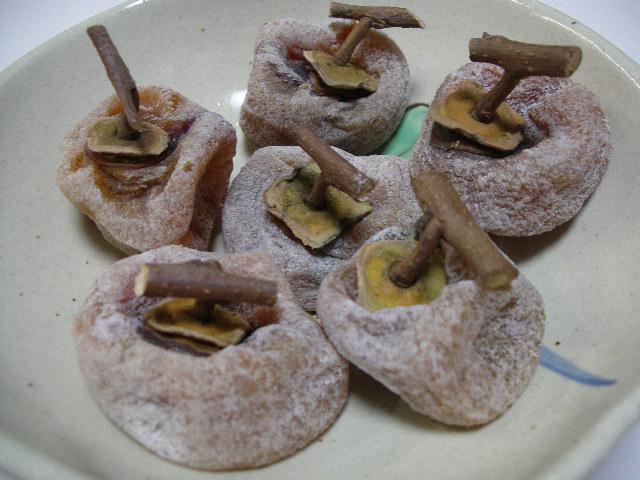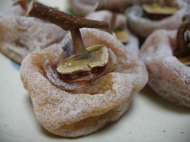 紅干柿についてよくこう言います。「他の干柿は春先 になると目方も味も減ってカサカサになるが、紅干柿は固くはなるが匁方も味も変わ らない。だから番茶などで柔らげると上等な和菓子のようになるんだ」と。