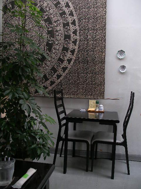 昔から趣のある「大きくエスニックなタペストリー」が明るい店内に落ち着きを与えてくれます。
