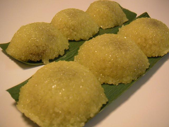 蔵王の稲花餅(いがもち)のように笹の上に3ヶのっかっています。