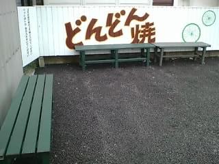 お店わきにあるベンチに座って、焼きたてを召し上がれ!
