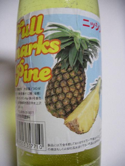 パイン味Full marksパインサイダーです。東洋一の大噴水で有名な月山湖売店で購入。