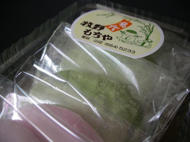 春らしい桜色とうぐいす色の大福餅です。