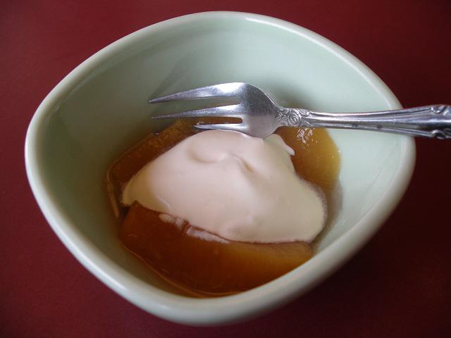 桃のコンポートがサービスで!