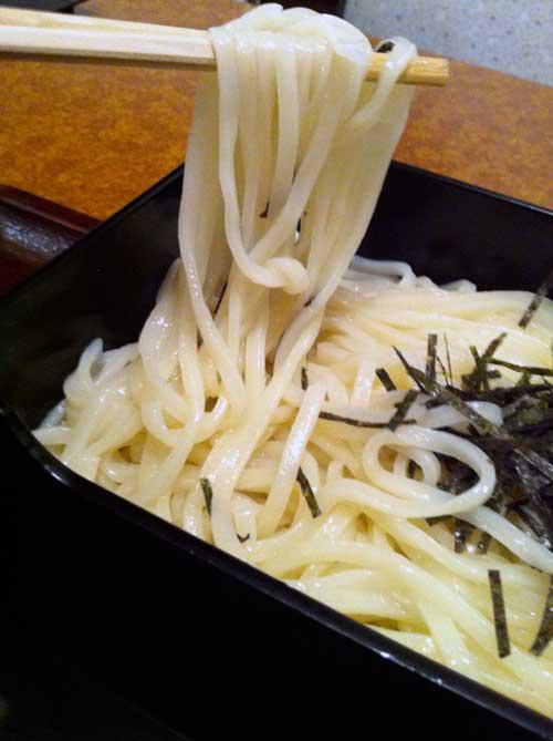 小麦粉をこねてのばし包丁で切る生麺