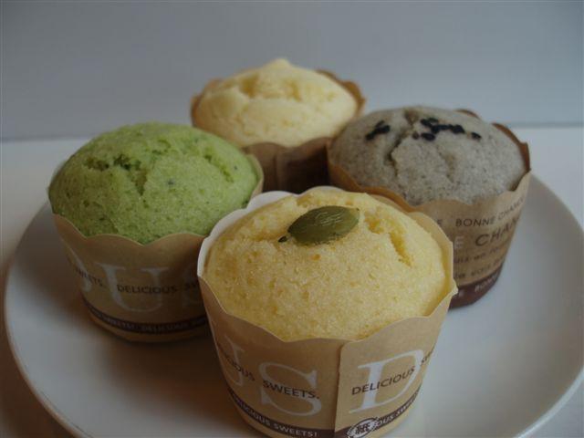 かぼちゃ(かぼちゃの種が表面にある物)とほうれんそう(抹茶いろしている物)ゆず(奥の黄色の物)古代米(表面に胡麻がある物)の4種類だそうです。