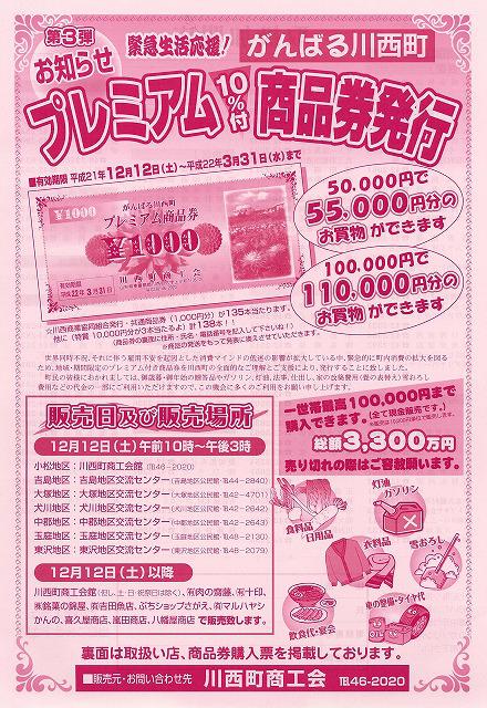 ▼☆.。.:*・゚川西町のプレミアム10%付商品券.。.:*・゚☆