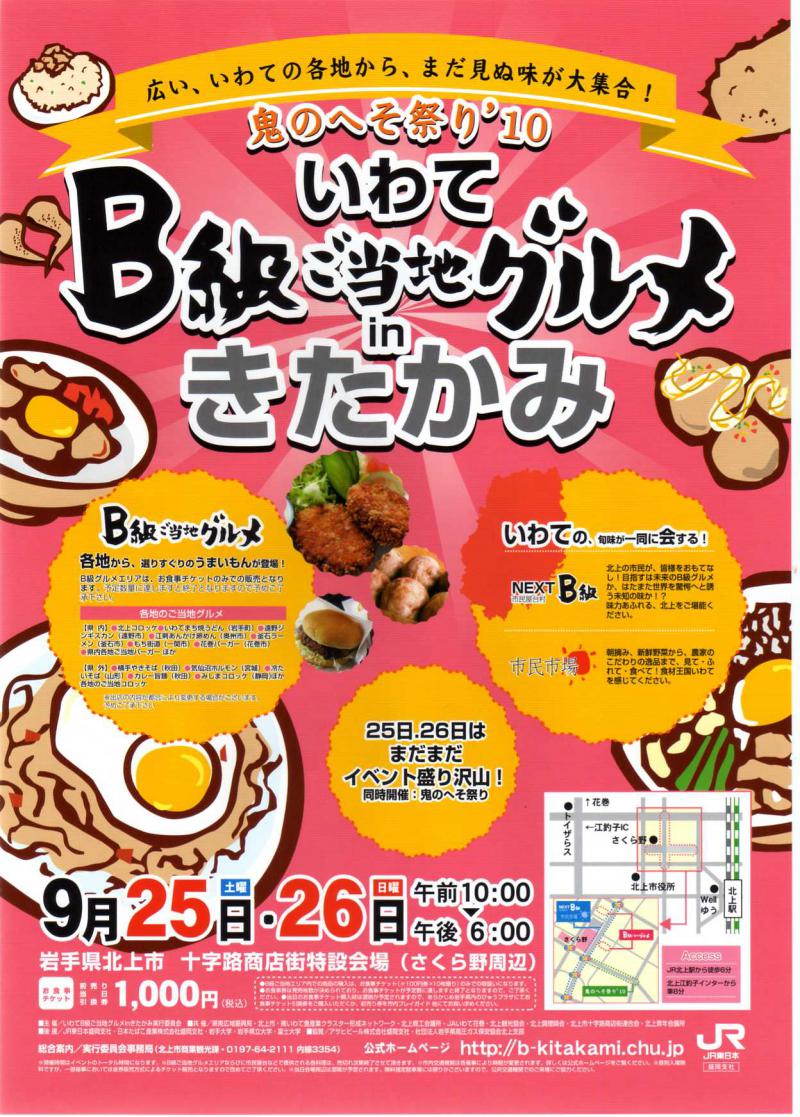 北上コロッケでまちを元気にしようと頑張っている北上で、9月25日・26日『いわてB級ご当地グルメinきたかみ』が開催されま〜す!^^