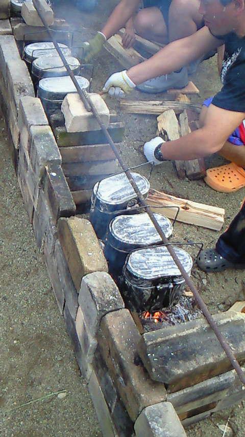 ハンゴウ・薪でお米を炊き、カレーライスに!!