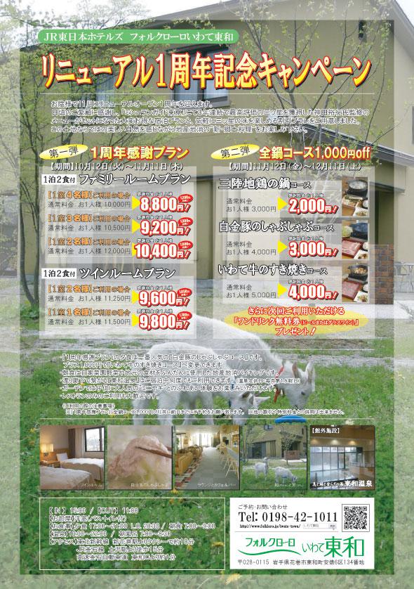 ▼【フォルクローロいわて東和】リニューアル1周年記念キャンペーン