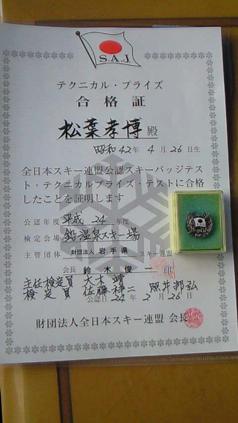 きのう、鉛スキー場にて「テクニカルプライズ」テストに合格しました〜!!^^