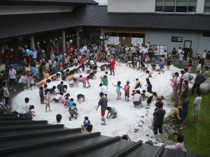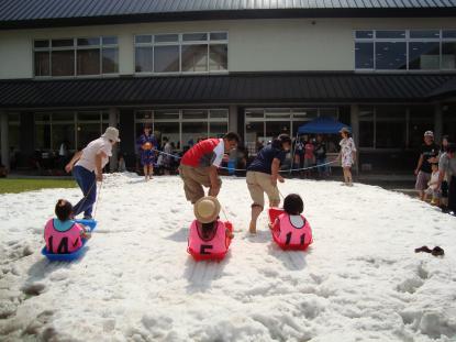 画像のイベントは毎年8月15日恒例の「真夏の雪まつり」です。開場は10:00からです。いろいろな競技・イベント・景品を準備し皆さまのご来館をお待ちしております!