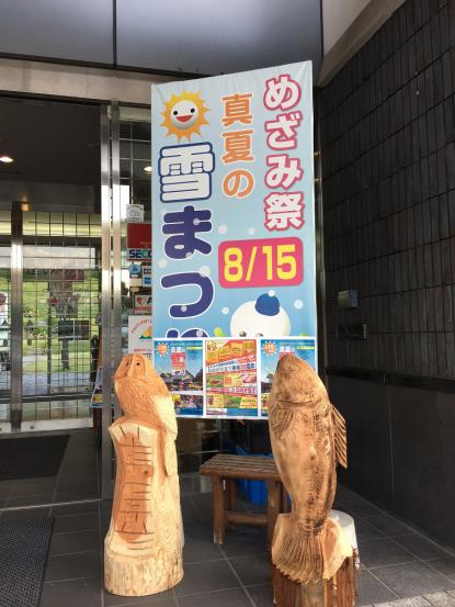 明日8月15日月曜日は道の駅いいで めざみの里観光物産館の中庭で毎年恒例の「真夏の雪まつり」が開催されます!皆さまのお越しを 100tの雪と一緒にお待ちしております!
