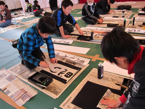道の駅いいで・めざみの里観光物産館では1月2日に恒例の書初め大会を開催しています。