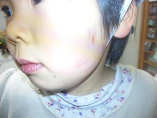 男の子とやり合ったらしく、ほっぺをガリっとやられたようでした。