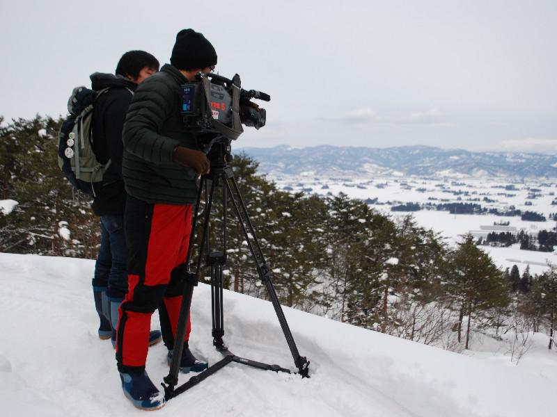 ちょうど、冬の散居集落の写真を撮りたかったので、私も同行させてもらいました!テレビカメラの横で写真をパチパチ撮りました。邪魔にならないように…