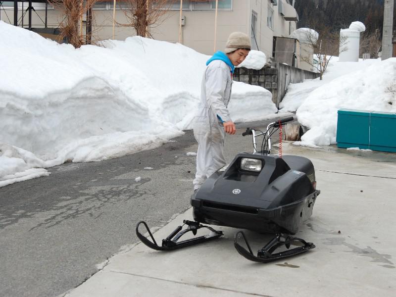 塩田さん曰く、「スノーモービルのおかげで車庫に車が入らなくなったよ、