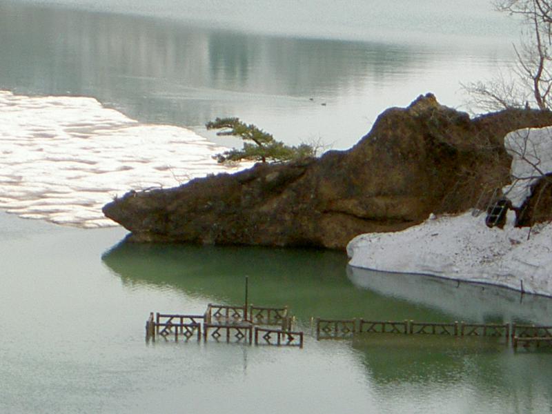毎年この時期になると白川湖のあるところに、ワニの顔にそっくりの岩が現れます。通称「ワニ岩」と呼ばれたり、別名「男岩」とも呼ばれたりしています。