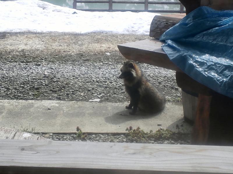 昨日、ホテルのロビーを掃除しているとテラスに茶色の影が・・・、