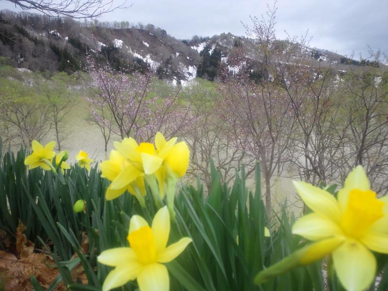 只今に白川湖周辺ではスイセンや桜、そして新緑が見ごろになってきております。