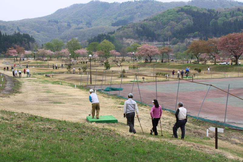 16日ようやくオープンした白川湖パークゴルフ場は、連日賑わっています。