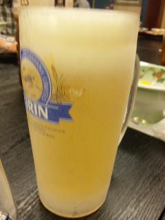 「魚豊味」さんの生ビールはキンキンに冷えていてジョッキが凍ってます。