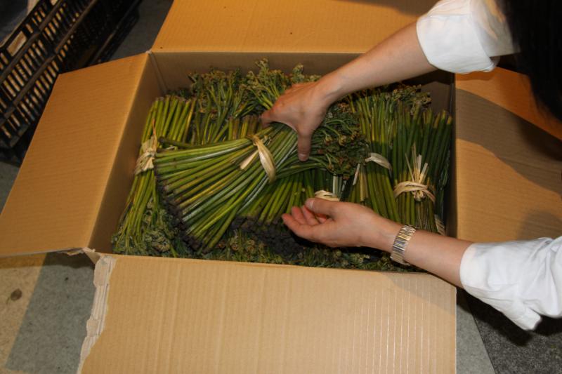 ようやくワラビ等の山菜がどんどん出回り始めました。一昨日の雨によって、ワラビも一気に元気を出しました。連日ワラビ・山ウドのご注文が殺到しております。1人の方で、20K・30Kも注文される方が多く、入荷したと思ったらあっという間に品切れ状態となる時もあります。中津川の山菜は大人気です。