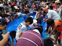ビニールシートのプールの中に200匹のヤマメを用意しました!