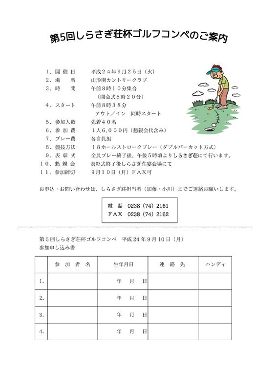 ▼【しらさぎ荘杯ゴルフコンペ】 申し込みのご案内