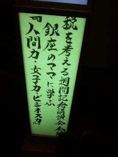 演題「銀座のママに学ぶ、人間力・女子力・ビジネス力」です。