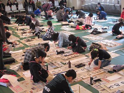道の駅いいで・めざみの里観光物産館では1月2日に毎年恒例の書初め大会を開催しています。