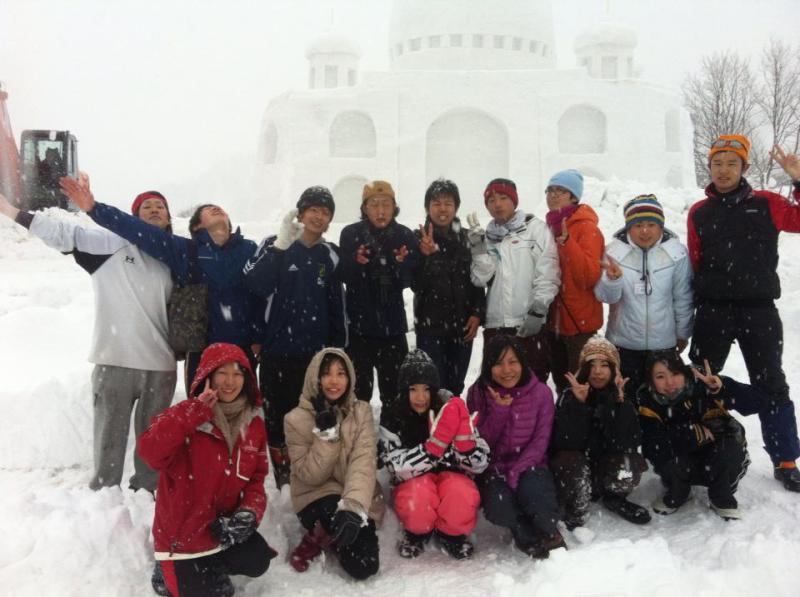 雪像製作の様子です。制作の人足の高齢化に強い助っ人となりました!