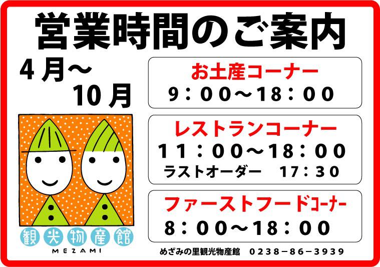 10月まで下記の営業時間となります。